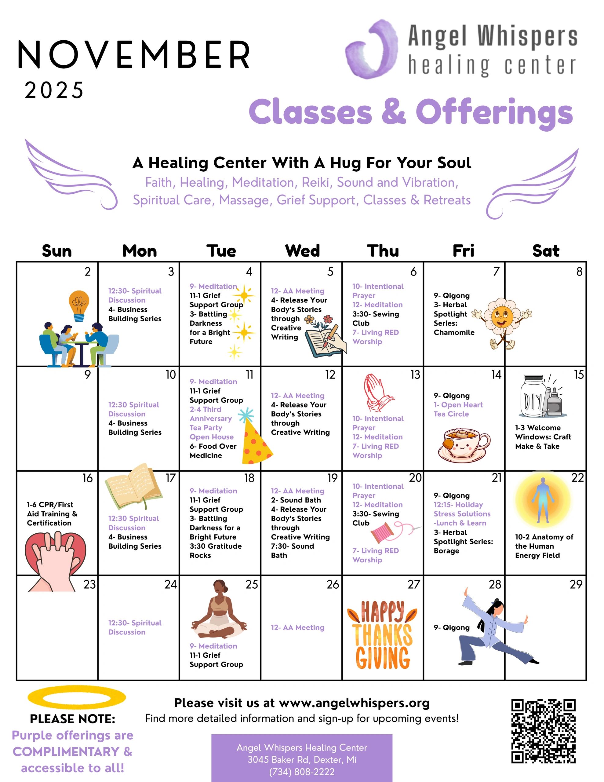 Explore our wide variety of offerings—from free community sessions to individual classes and multi-week series. Each experience is led by talented, compassionate teachers eager to share their gifts and guide you on your journey.