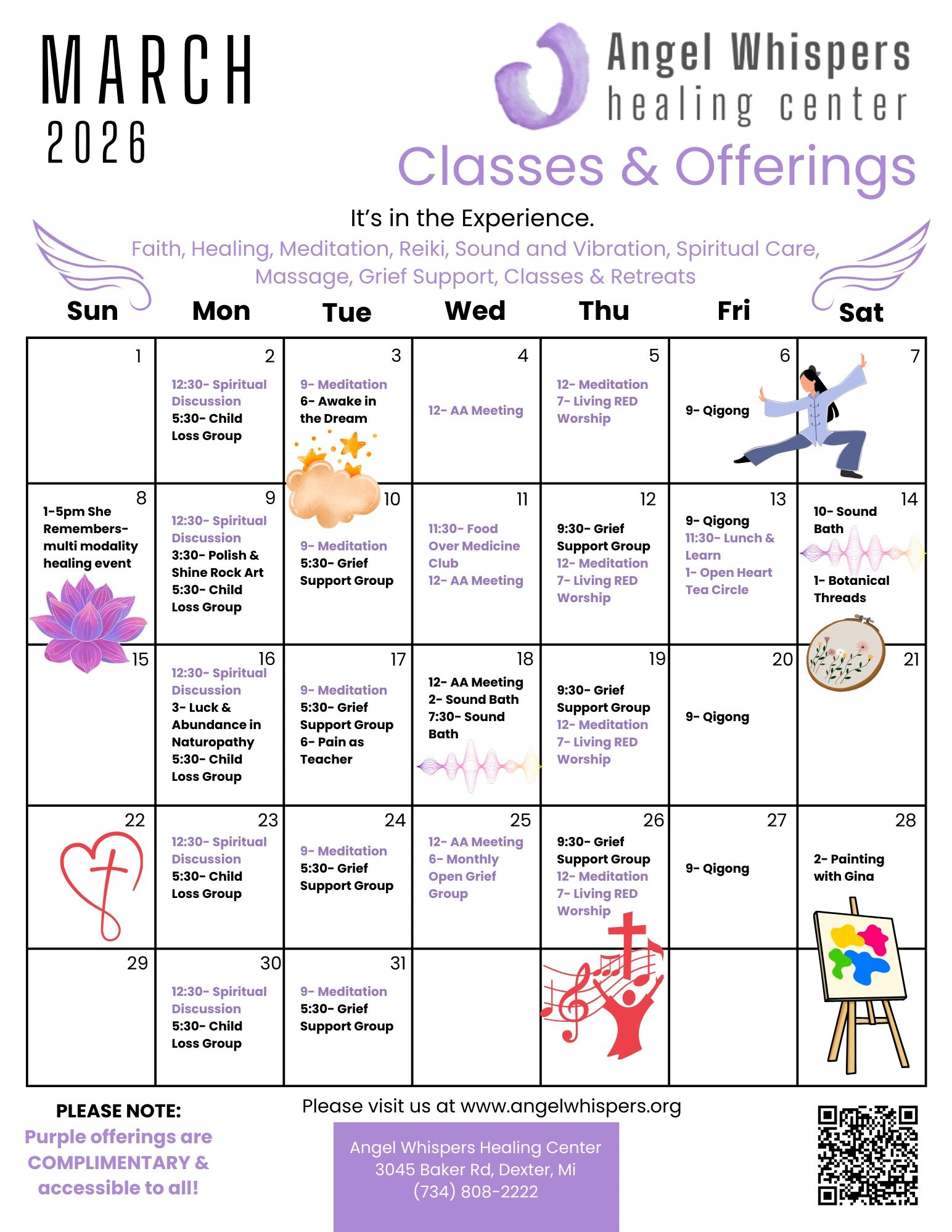 Explore our wide variety of offerings—from free community sessions to individual classes and multi-week series. Each experience is led by talented, compassionate teachers eager to share their gifts and guide you on your journey.